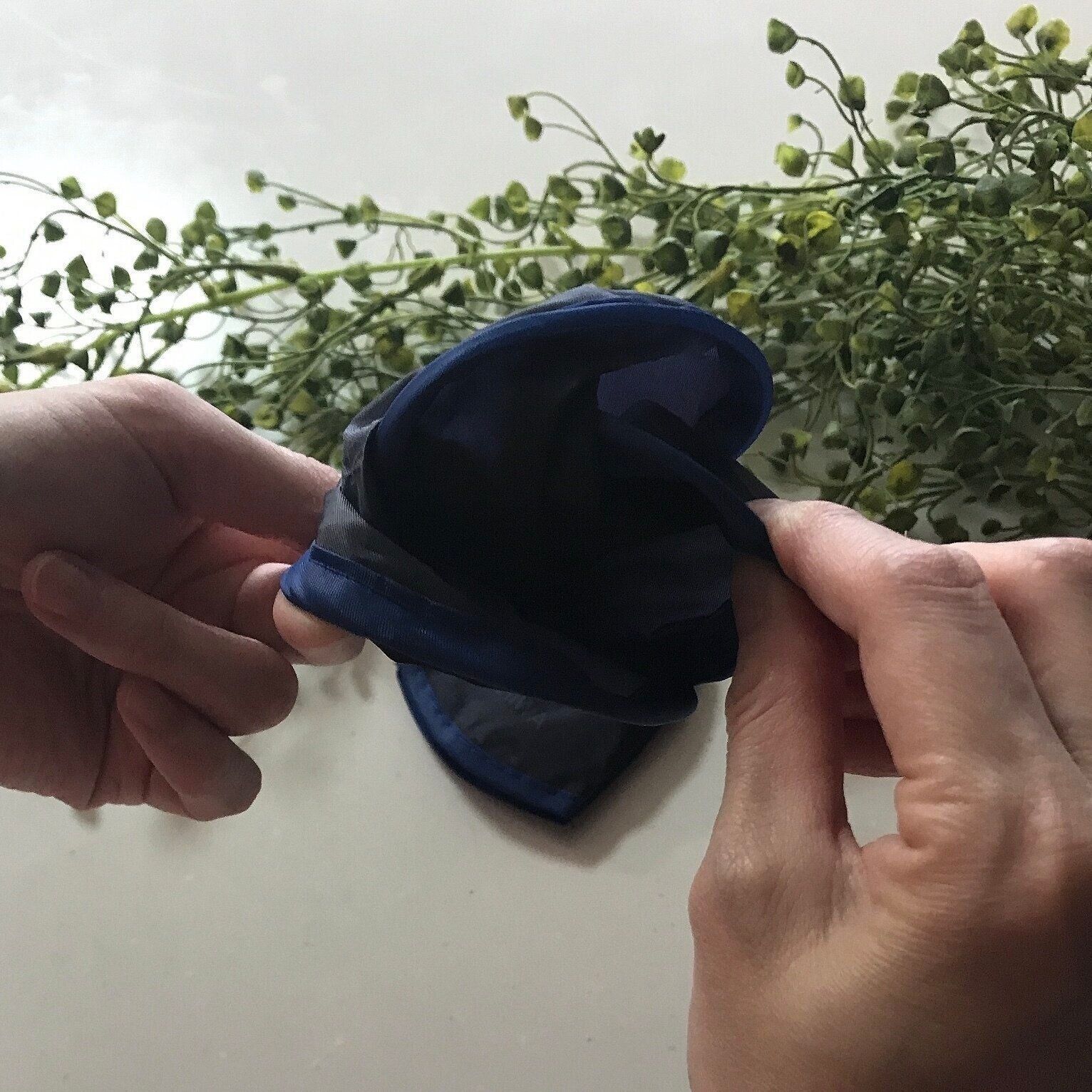 8の字になったものを半分に折りたたんでケースに入れます。使いたい時にパッと広げてパッとしまえるのはすごく便利ですね。