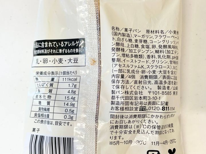 栄養成分表示を確認すると、1個あたり111kcalとこの薄さなのになかなかの高カロリーですね。