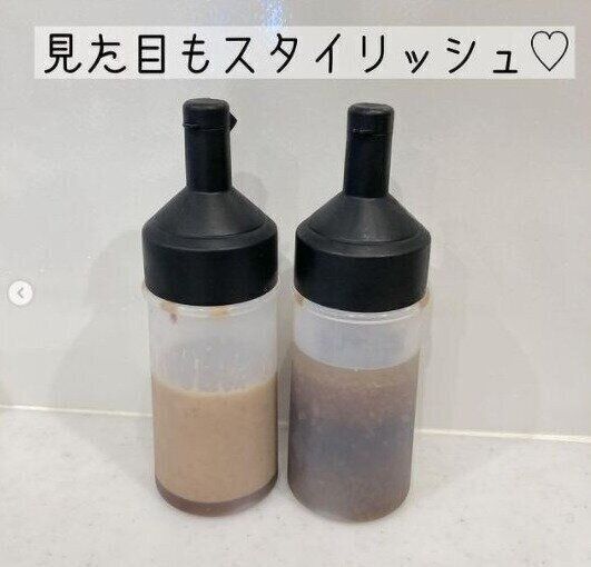 シンプルな見た目で、ドレッシングやオイルを入れるのに最適なボトルです。おしゃれにラベリングすれば機能性もアップし、キッチンのインテリアにもなります。