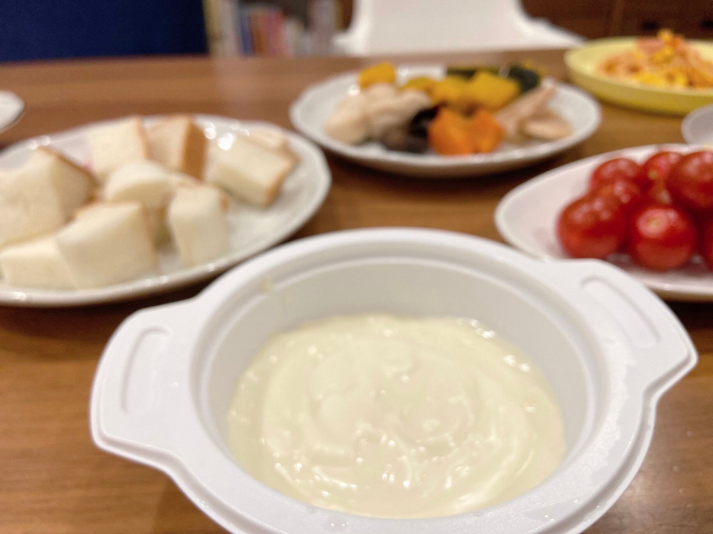 ゴーダチーズ、チェダーチーズをベースに、エメンタールチーズパウダーで仕上げた、なめらかでマイルドな味わいで、こちらも子どもから大人までおいしくいただけるチーズフォンデュです。