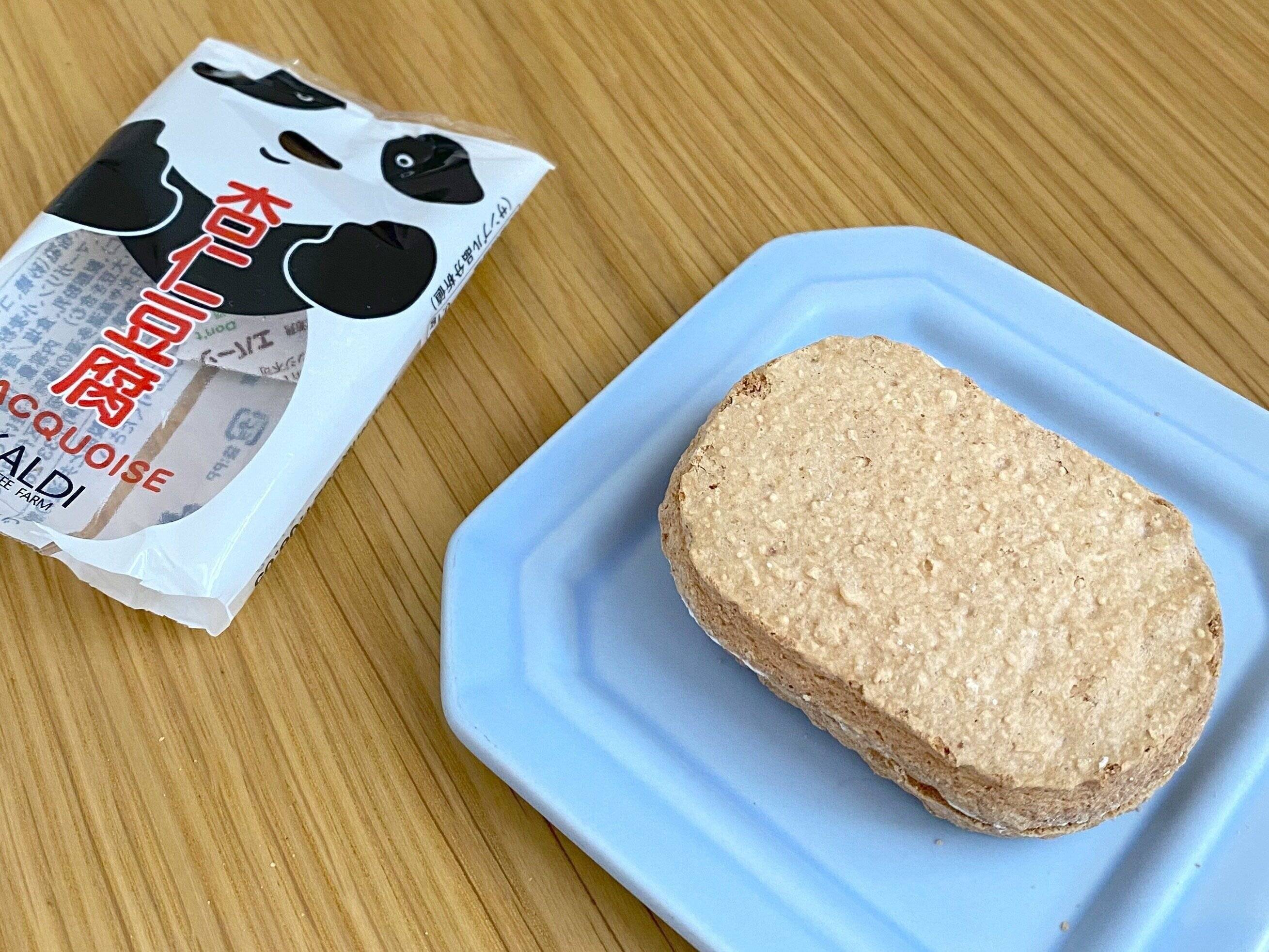 カルディの商品情報には「当店人気のパンダ杏仁豆腐をイメージしたオリジナルダックワーズです」と紹介されていました。