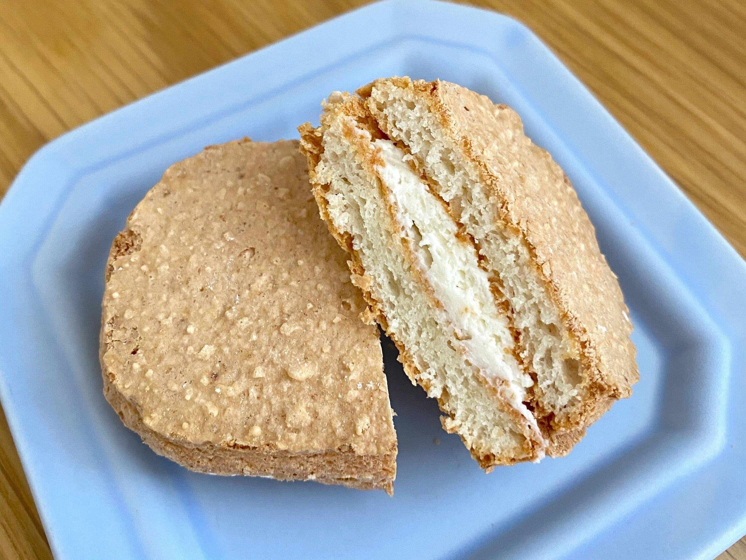 表面がサックリ中はふわふわのダックワーズ生地に、なめらかなクリームがサンドされています。口に入れた瞬間からしっかりと杏仁豆腐味!程よい甘さで軽い食感だから、あっという間に完食してしまいました!
