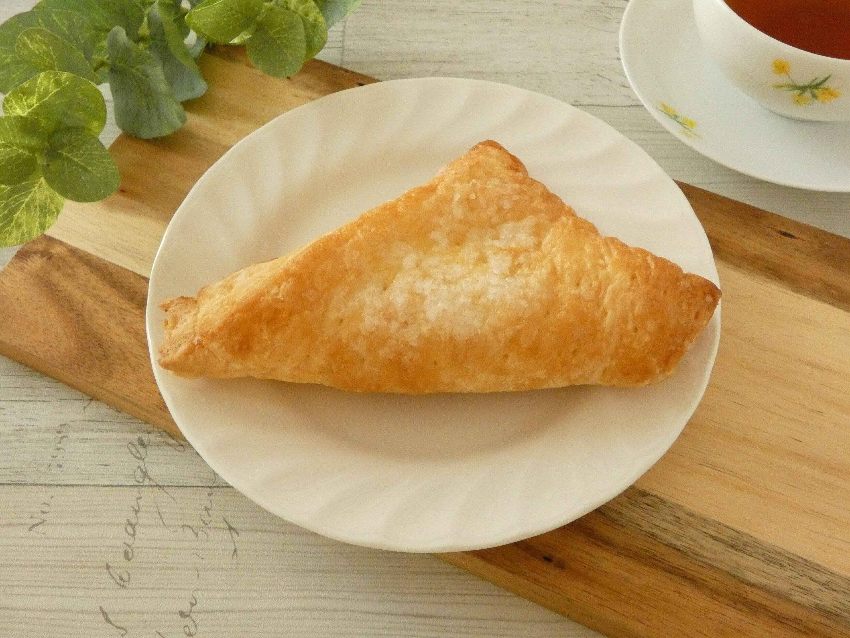 開けるとレモンの爽やかな香りがして、パイはしっとりしていて表面にざらめがたっぷりちりばめてあります。
