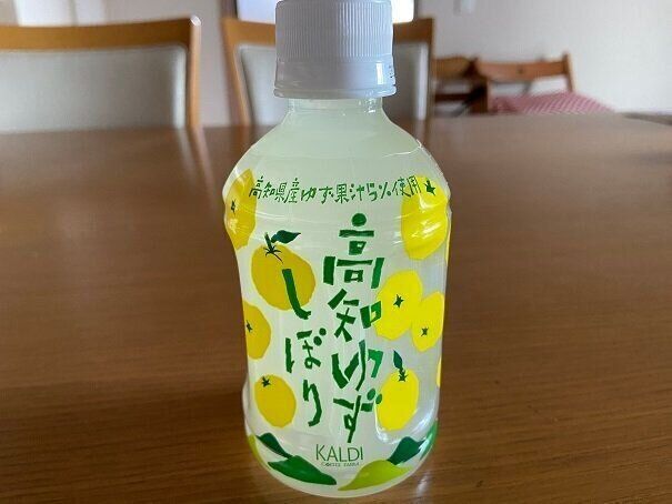 ゆずのイラストが可愛らしいデザインの「高知ゆずしぼり」(購入時価格:157円)は高知県産のゆず果汁を使用したジュースです。