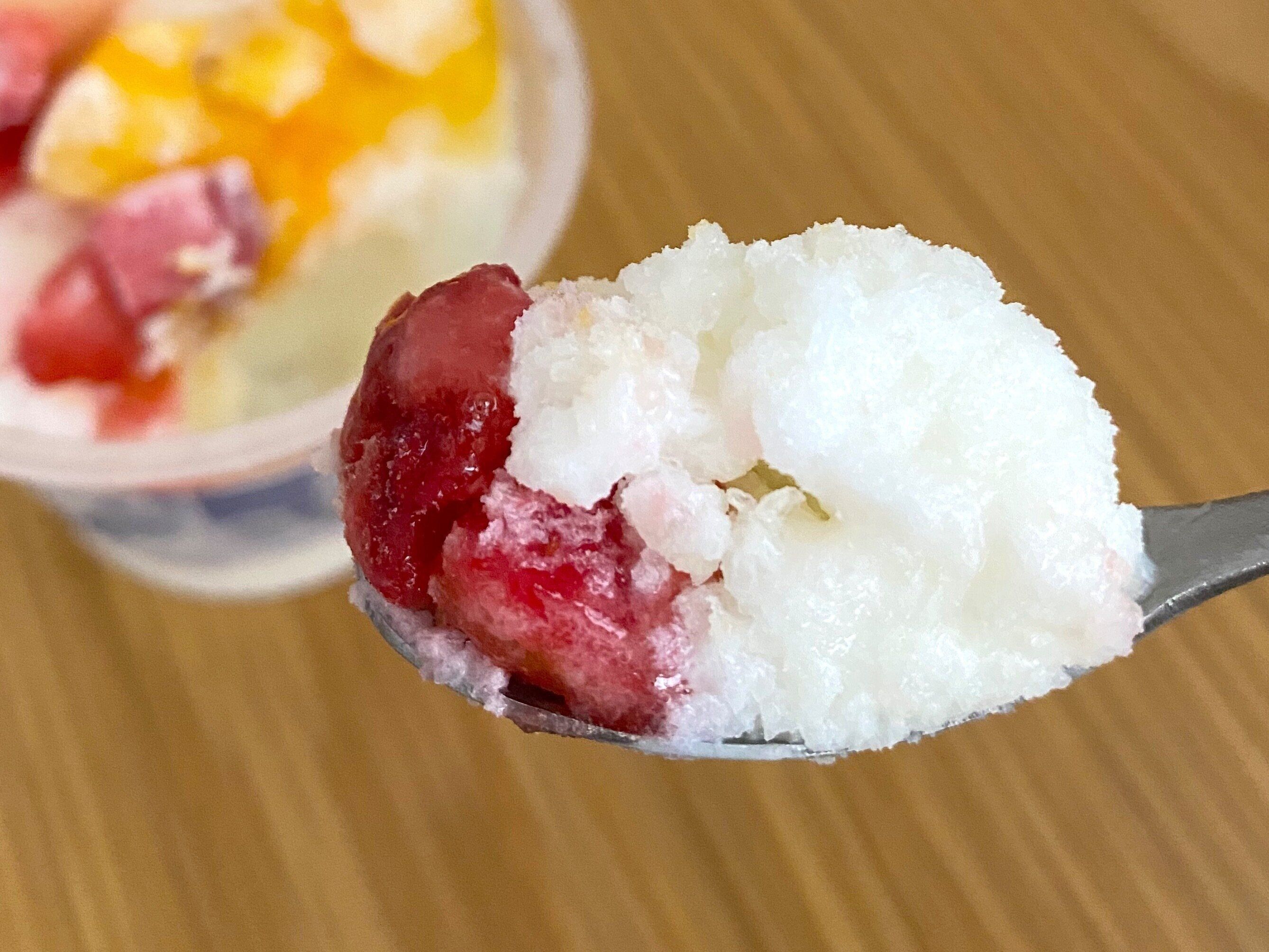 練乳入りかき氷は口に入れた瞬間はシャキシャキ食感で、すぐに心地よくスッーととけていきます。食べ進めていくと中からトロ〜っと練乳が登場し、これがまた濃厚さを増してくれておいしい!全体的にコクがありミルキーな味わいですが、クドさがないのでいくらでも食べられそう◎