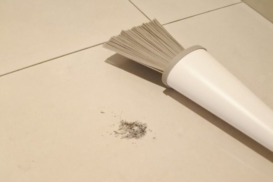 汚れが消しゴムカスとなってポロポロと落ちるので、新聞紙を敷いてお手入れすると後片づけが楽になりますよ。