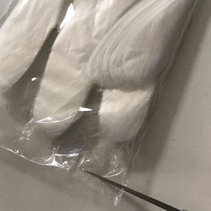 上部の台紙部分は外さず、下部をビニール手袋を切らないようカットします。