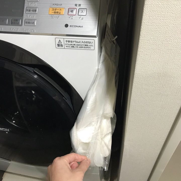 お風呂や洗濯機の排水溝の掃除、そしてトイレ掃除に使うビニール手袋は洗面所に吊り下げておくことで動線的にもバッチリです。