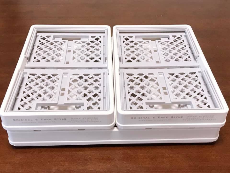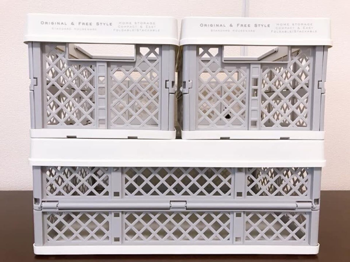 折り畳み時も、組み立て後もスタッキングができちゃいます。同サイズは勿論、Mサイズの上にSサイズを2つ並べてもぴったりスタッキングできるので、見た目もすっきり。使わない時は家の中のデッドスペースも効率的に使えます。