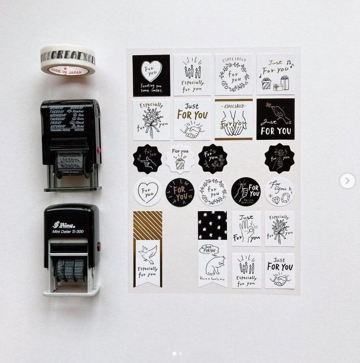 差し色のゴールドが効いた、シンプル&シックなモノトーンシール。プチプラとは思えない高級感があるので、プレゼントラッピングに使うのもよいですね!同系統のマスキングテープやスタンプなどと合わせて使うのもおしゃれです。