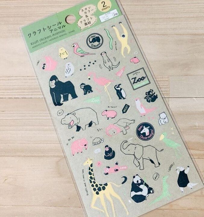 いろいろな種類の動物たちのイラストがゆるっとかわいい、クラフトタイプのシールです。見ているだけで癒されるポーズや表情。あまりにかわいいので、「使いたいのに使えない!」という声もありますよ。