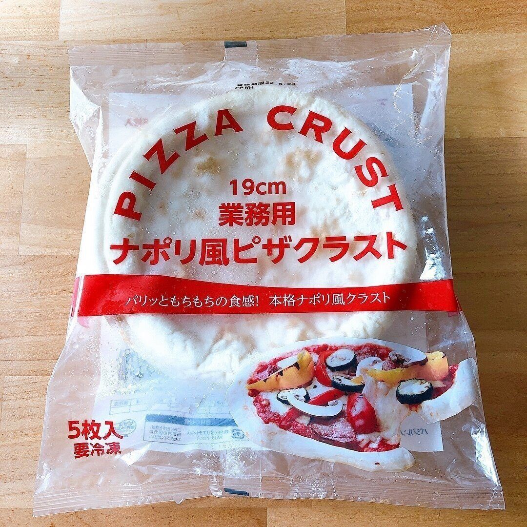 19cmのピザ生地が5枚入って348円なので、1枚あたり約70円です。お気に入りの具材をのせて焼くだけで、手作りピザが簡単につくれちゃいます。