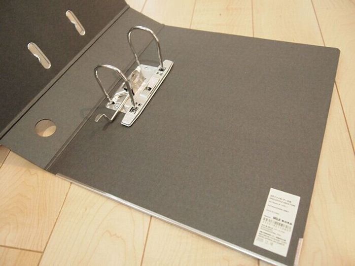 前々から気になっていた「無印良品のスチール2穴パンチ サイドゲージ付」。2穴パンチで収納しちゃえば、もっとカサは減るのではないか!?そしてより見やすいのではないか!?そう考え、新しい収納方法を試してみることに。