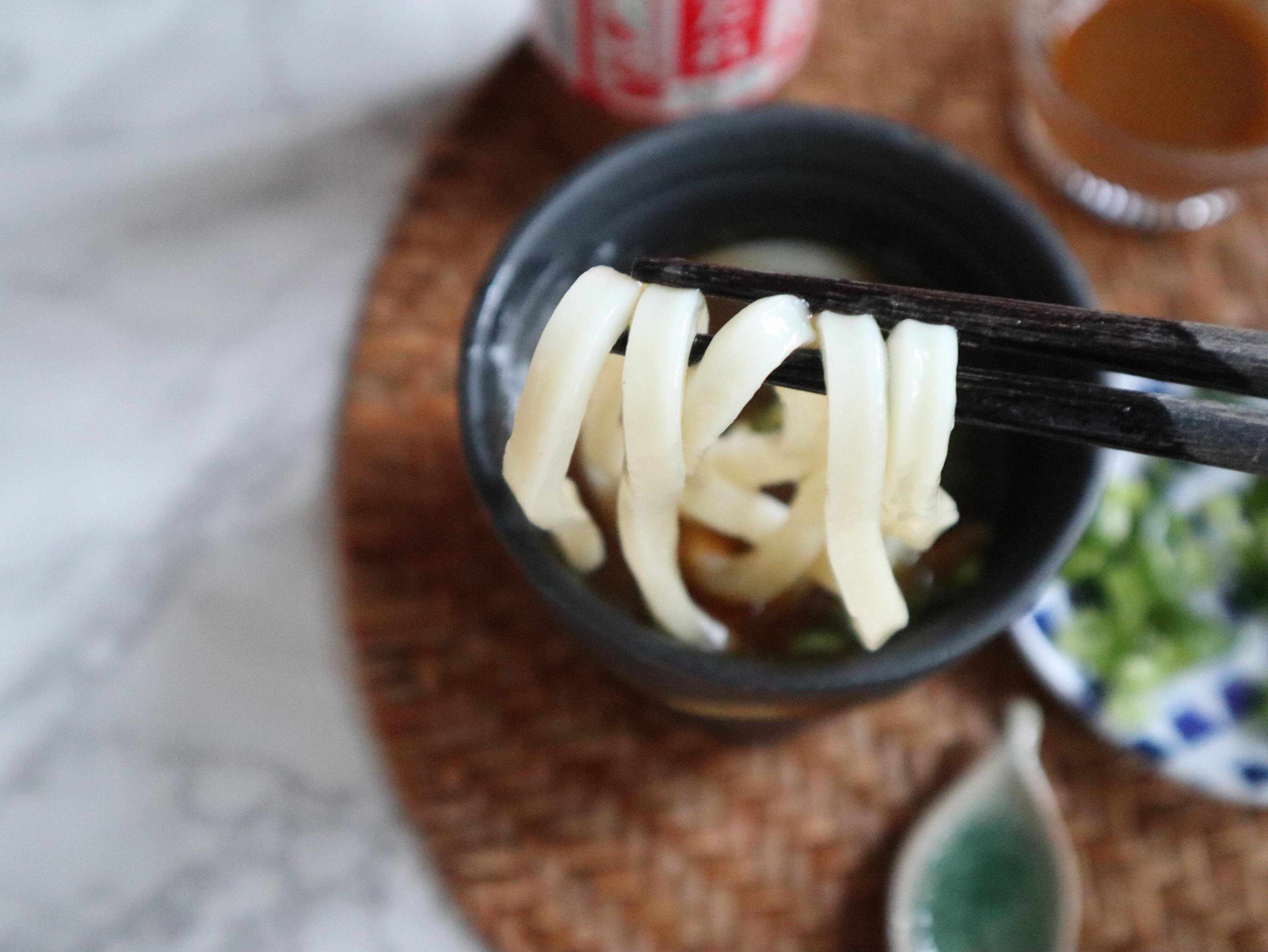 ざるうどんのつけつゆにしびれ麻辣だれを大さじ1程度ちょい足しすると新鮮な味わいに!