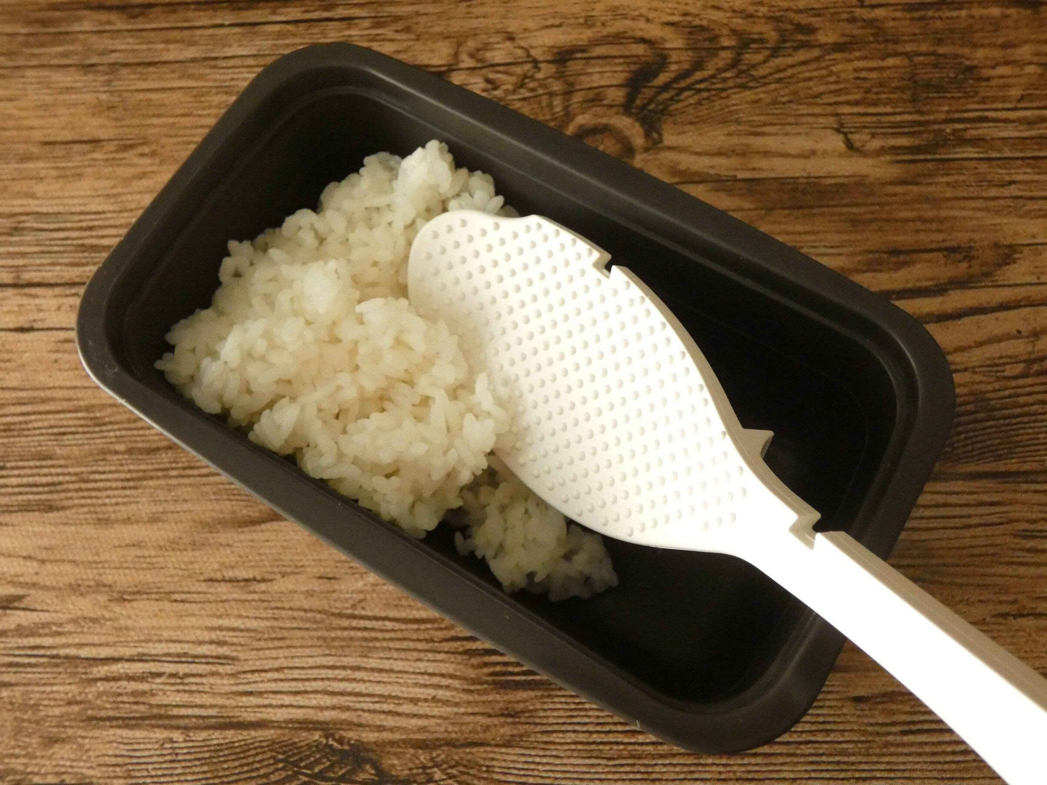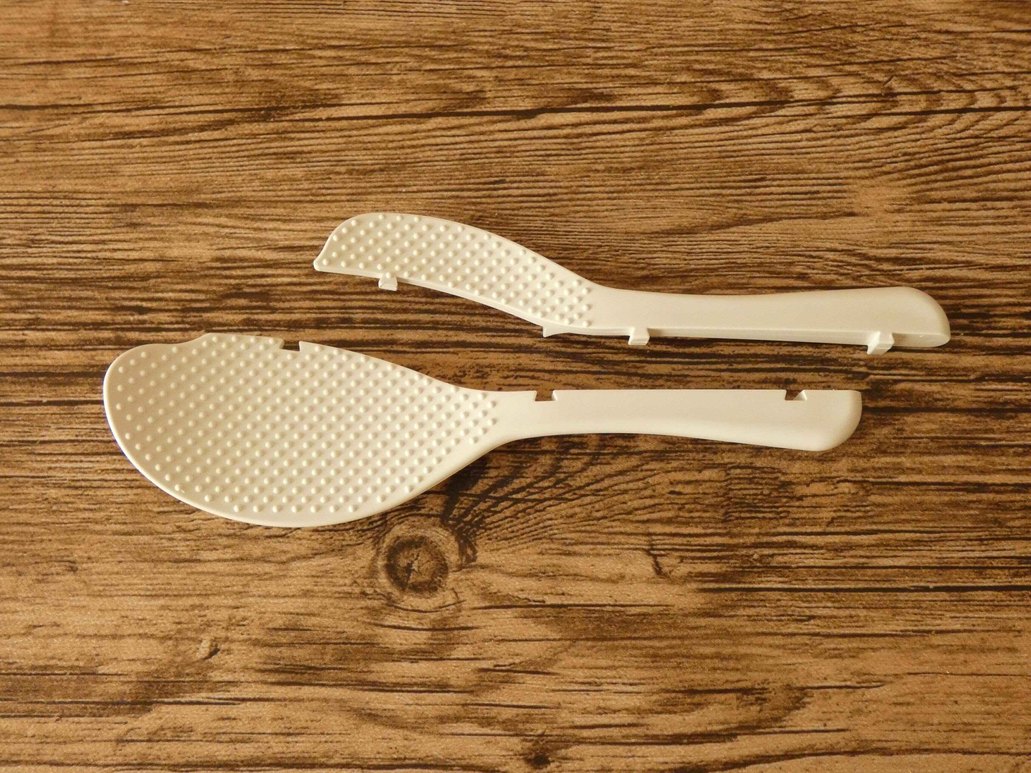 分解した大きいほうのしゃもじはお弁当にご飯を詰めるときに便利です。幅が少し狭くなると小さなお弁当箱にご飯を詰めるときにぴったり!
