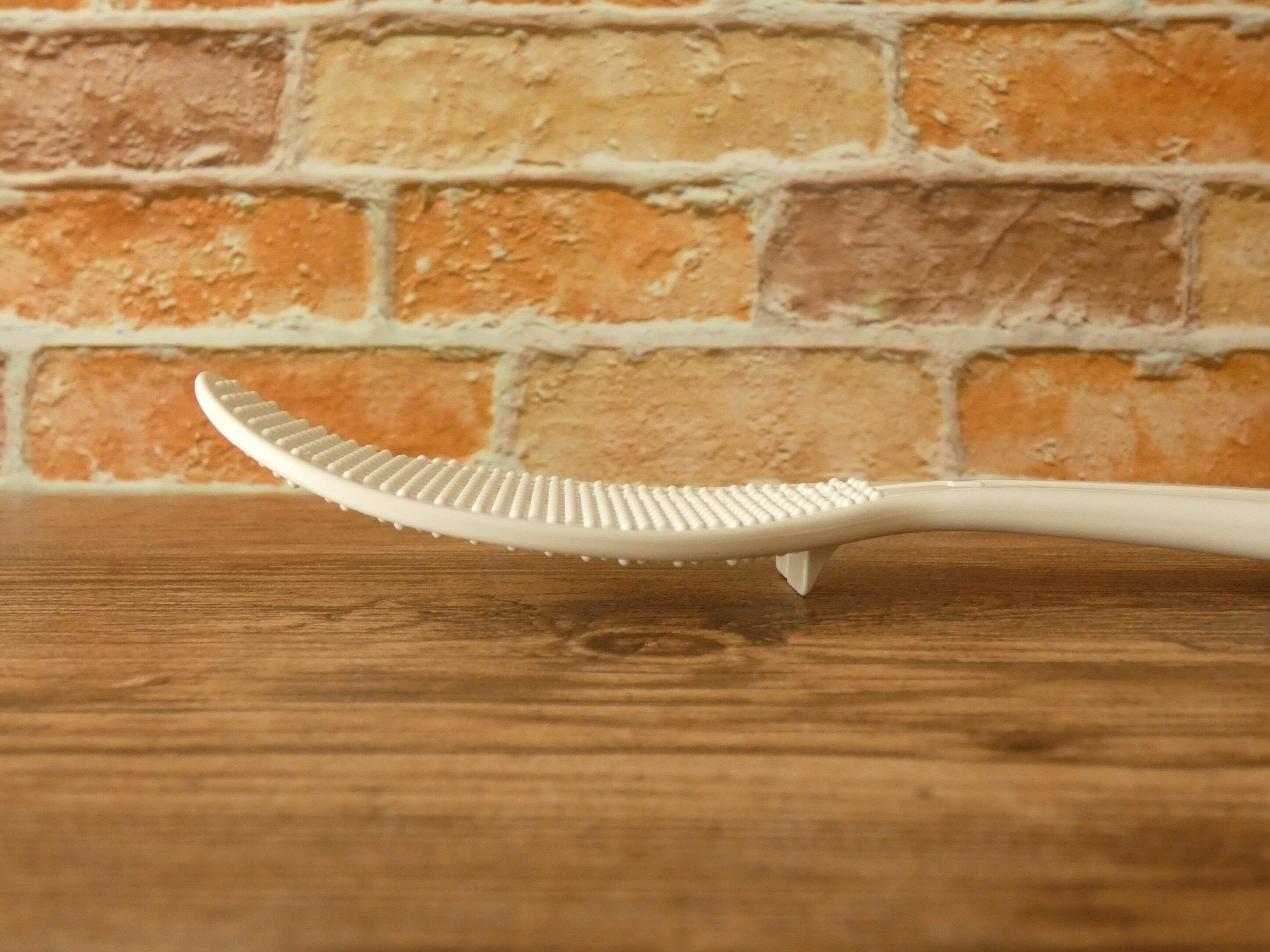 大きさは縦20.5cm、いちばん広い横幅は7cmで、1つで4つの機能を持った便利しゃもじです。