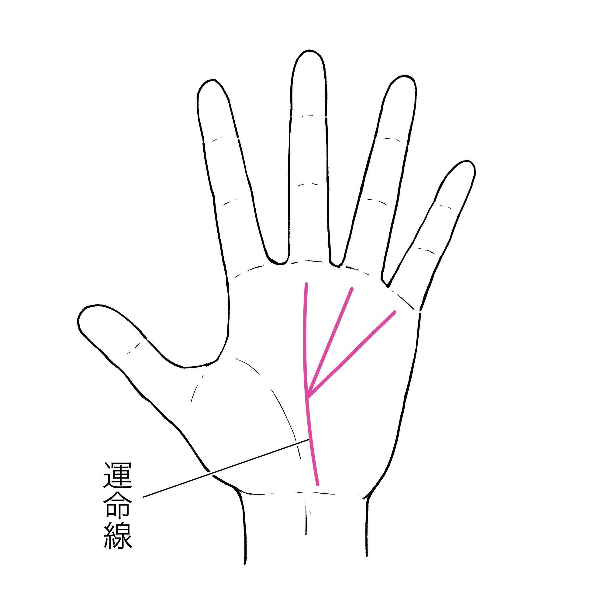 真っ直ぐな運命線を持っている人は、自分で道を切り開くことができます。自分の哲学や信念に従って突き進むことで仕事運が上がり、結果お金がついてくるというタイプ。何か起きても「大丈夫!」「なんとかなる!」と前向きに考えて進んで行くことができます。