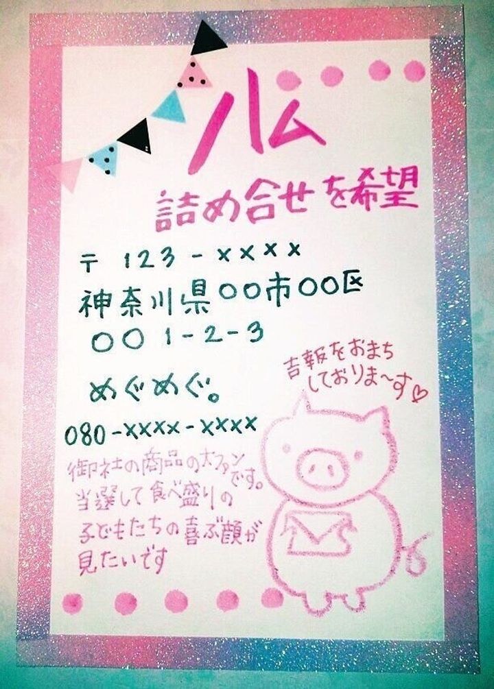 「シールなどのデコレーションは控えめにして、対象商品への正直な感想や、当たったときこうしたい!などのコメントを添えるようにしています」(めぐめぐ。さん)。