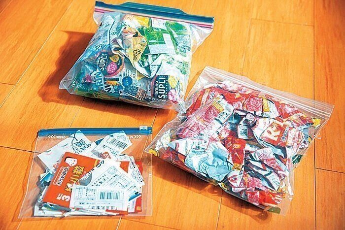 「懸賞によって、バーコードや指定のマークなど、必要な応募券が変わることがあるので、パッケージのまま保管。種類ごとにざっくり分けるだけ」(めぐみZさん)。