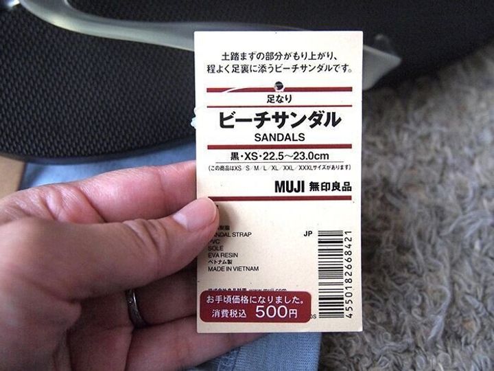 足なりビーチサンダルは定番商品でずっと気になっていましたが、690円が500円に!色数も多く、サイズ展開も豊富。私は子どものように足が小さいのでXSサイズがあってうれしかったです!