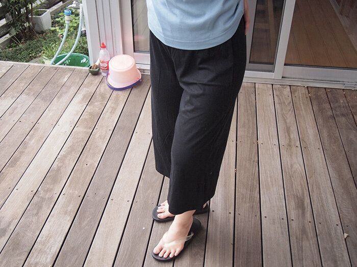 レーヨンコットン天竺七分丈パンツは部屋着として着まわすので最高でした!ちょっと外にも出られるような格好なので安心です。お安いのにこれはうれしい!