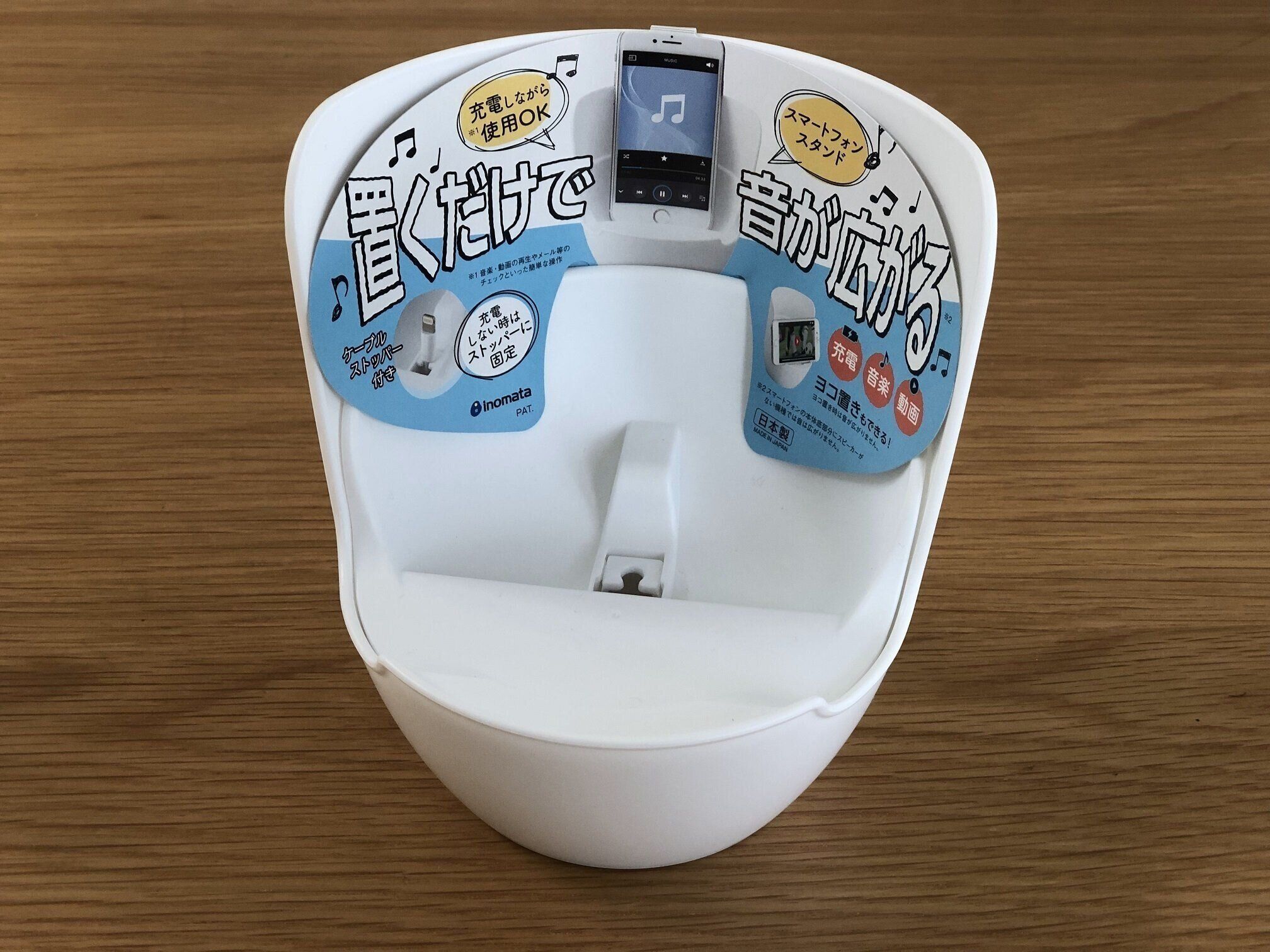 ケーブルがスッキリ固定できて机回りがスッキリ見せられる、こちらのスマートフォンスタンド。ただのスタンドじゃないんです。特徴的な構造のおかげで、ここに本体を置いた状態で本体スピーカーから音を流せば、音が広がって聴こえるんです。縦置き横置きどちらもOK!スピーカーまではいらないけれど……というかたにピッタリです。