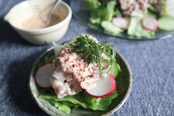 辛みと旨みがたっぷりのドレッシングをかければ、野菜がたっぷり食べられます。花椒の香りのするドレッシングはあまり市販では見ないので、手軽に手づくりできるのはいいですよね。