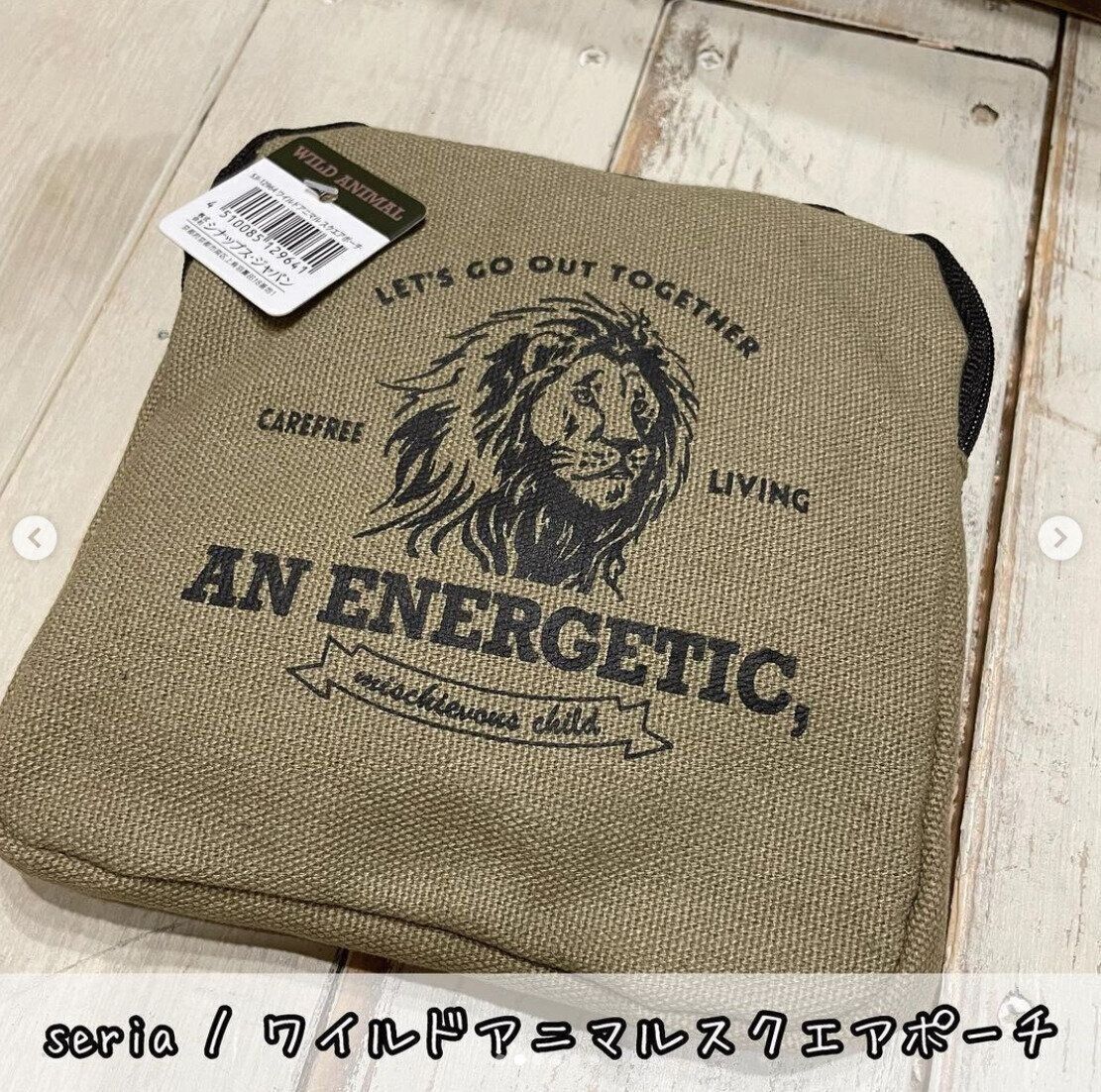 スクエア型とワイルドなアニマルデザインがおしゃれなポーチ。ダークな色味で汚れも気にならず、アウトドアアイテムの収納にもおすすめですよ。ファスナータイプでたっぷり広がるので、出し入れも簡単です。