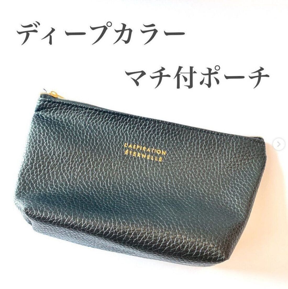 コスメや小物など、たっぷり入って使いやすいマチつきポーチ。レザー風デザインや配色もおしゃれで、高見えすると人気です!カラー違いでそろえたり、バッグの中の仕切りアイテムとして活用するのもよいですね。
