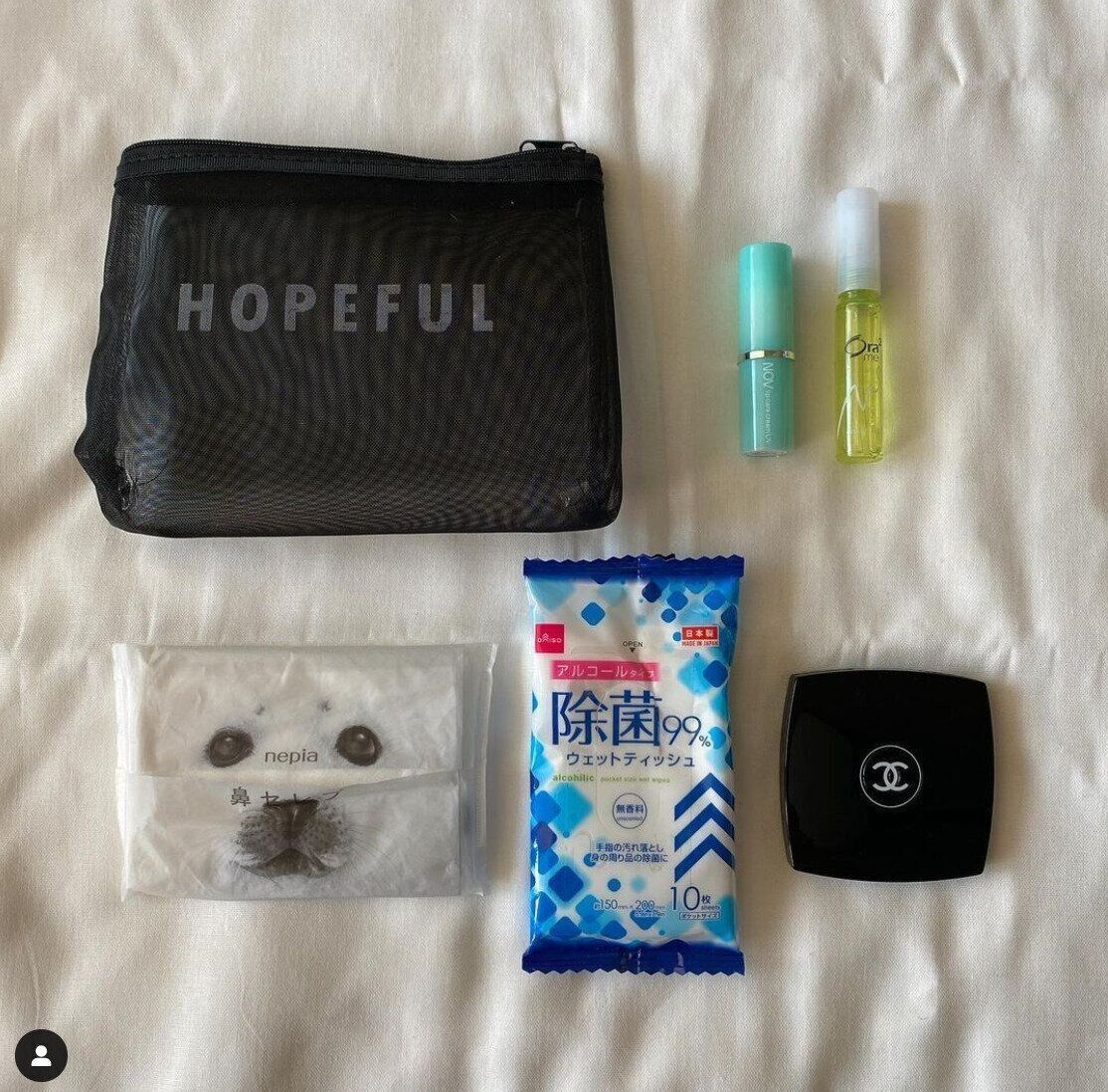 メッシュタイプのポーチは、通気性もよく中身が見えるので使い勝手抜群。こちらはロゴ入りのシンプルかつおしゃれなデザインのポーチで、お出かけに持ち歩くスタメンポーチとしても大活躍します。