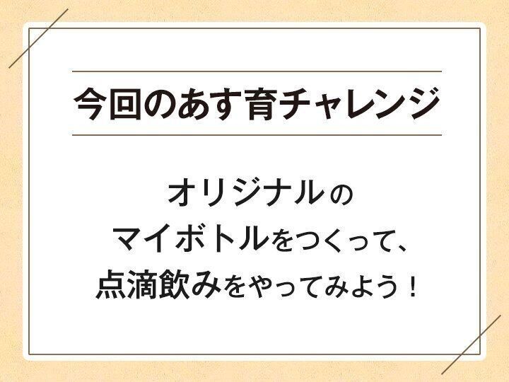 屋外はもちろん、家の中でもこまめな水分補給が大切なことを知りました。そこで…お子さんと一緒にオリジナルのマイボトルを作ってみませんか? 透明のボトルに絵を描いたり、シールを貼ったり、思い思いに彩りましょう。世界にひとつだけ、自分で作った自分だけのオリジナルマイボトルなら愛着もひとしお。使うよろこびによって、点滴飲みを習慣づけることができます。透明ボトルなので、どれくらい飲んだのか一目瞭然なのも便利です。