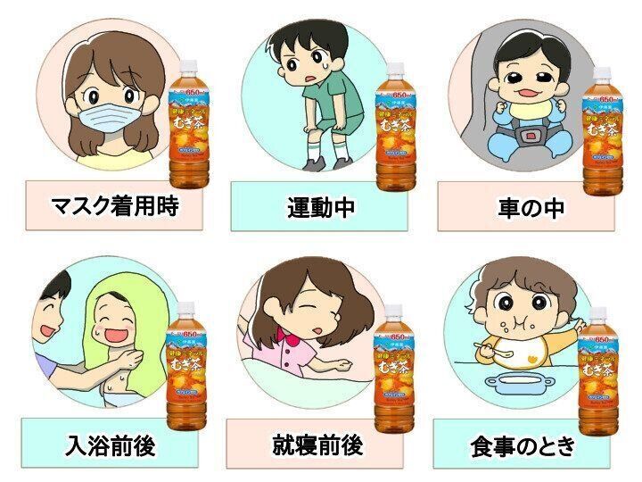 マスクをしているときはとくに意識して、お子さんへ水分補給を促すようにしましょう。