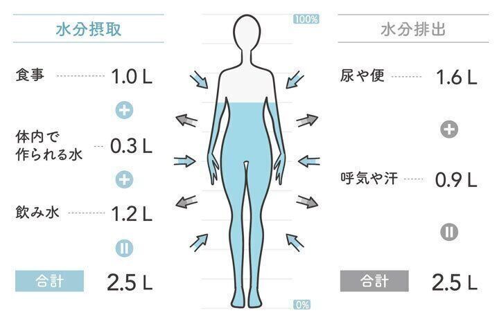 不感蒸泄(ふかんじょうせつ)という言葉を聞いたことがあるでしょうか? 人間の体からは目に見える汗のほかに、皮膚や吐く息からも常に水分が失われています。