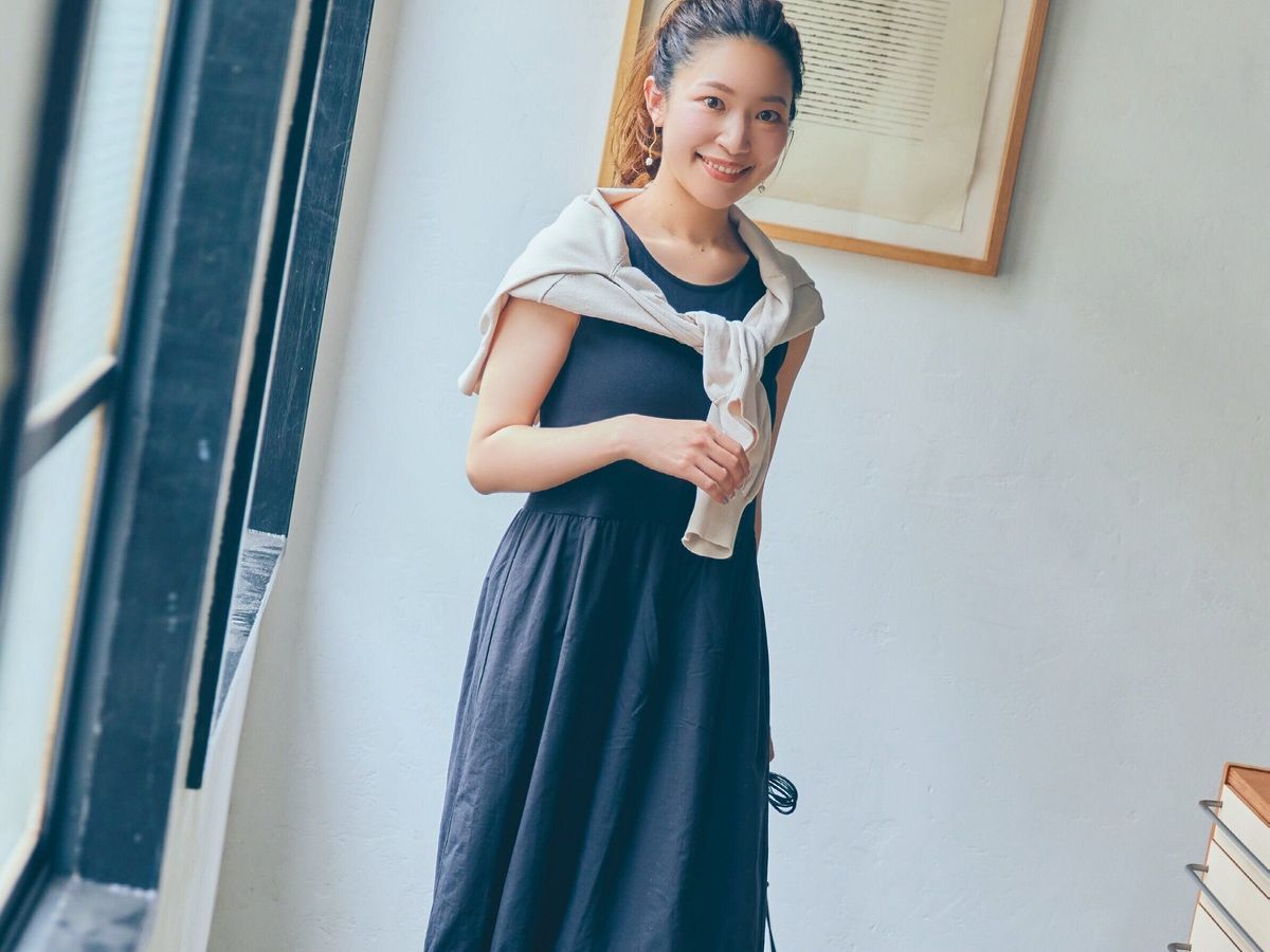 ワンピース¥7,150、カーディガン¥7,150/ビーミング by ビームス(ビーミング ライフストア by ビームス アーバンドック ららぽーと豊洲店TEL03・3532・3100) バッグ¥13,200/Soglia(ソグリアhttps://soglia.official.ec) サンダル¥10,780/テバ(デッカーズジャパンTEL0120・710・844) ピアス¥2,200/earyear(イヤーイヤー ttps://bhselect.base.shop/) その他/本人私物