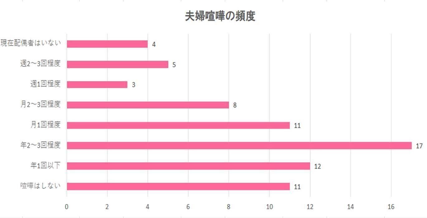 夫婦喧嘩の頻度は「年に2、3回程度」が一番多い結果に