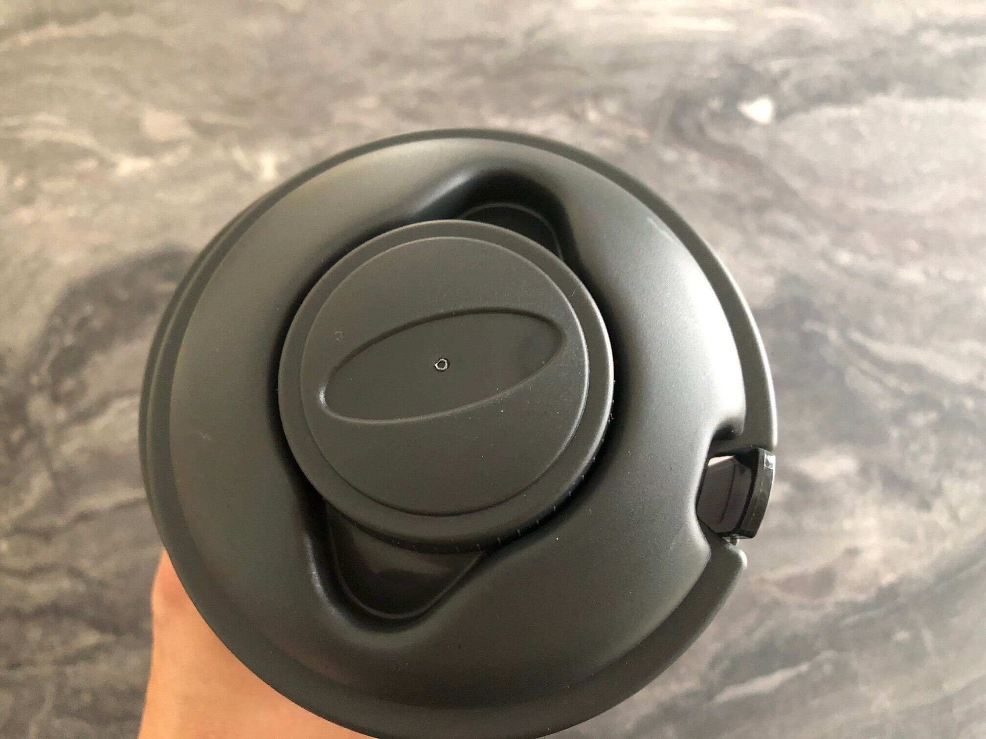 サイズは上部が直径約10cm、底部が直径約8cmの円筒形で、高さが約16cm。500mmのペットボトルより一回り大きめですが、片手で握りやすいサイズです。