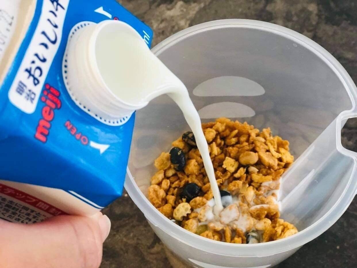 牛乳だけ途中のコンビニなどで調達すればシリアルランチになります。お弁当づくりができない忙しい朝の秘策にいかがでしょう?