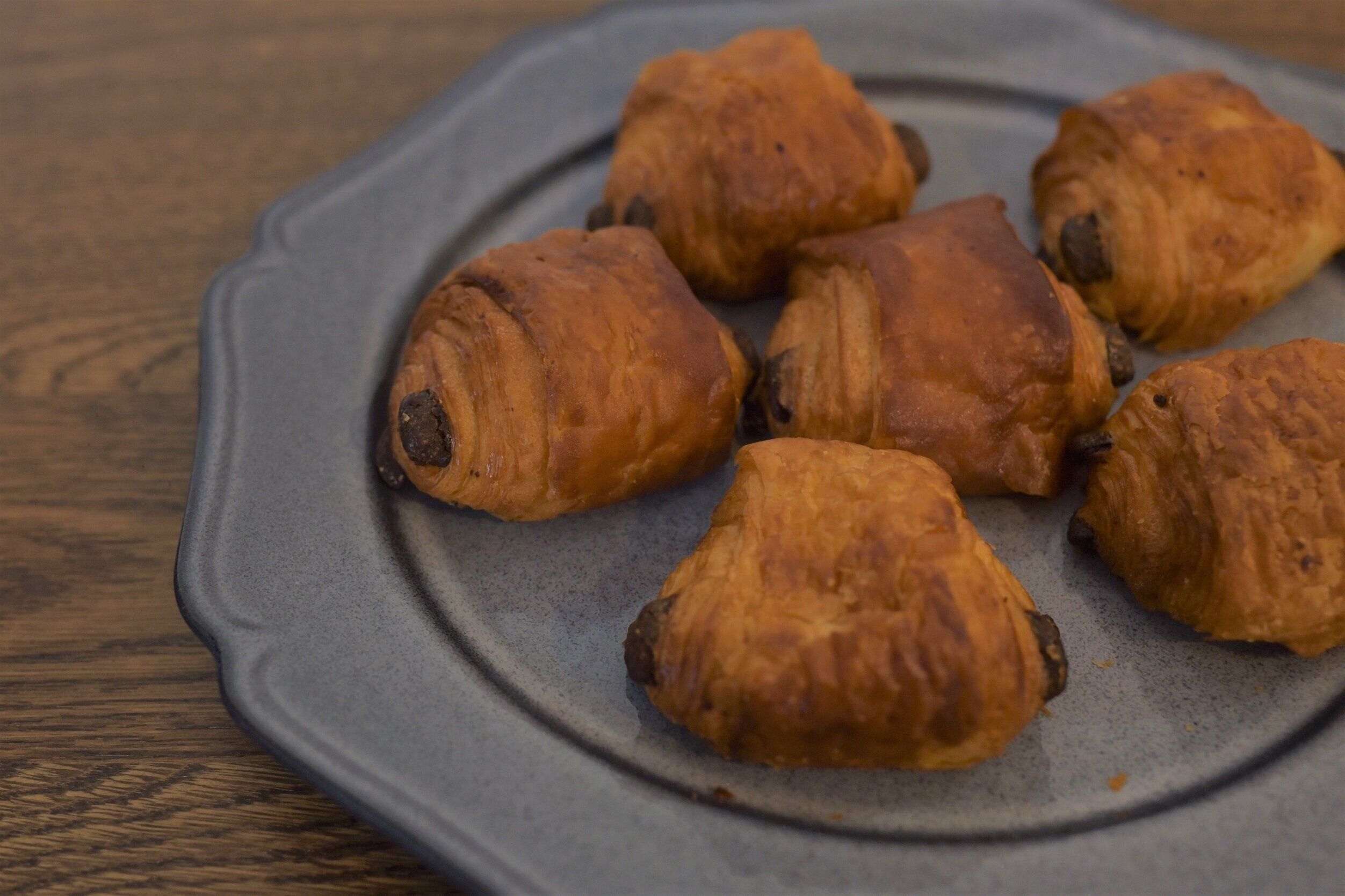 チョコレート入りのディニッシュパンです。生地にはフランス産の小麦が使用されています。