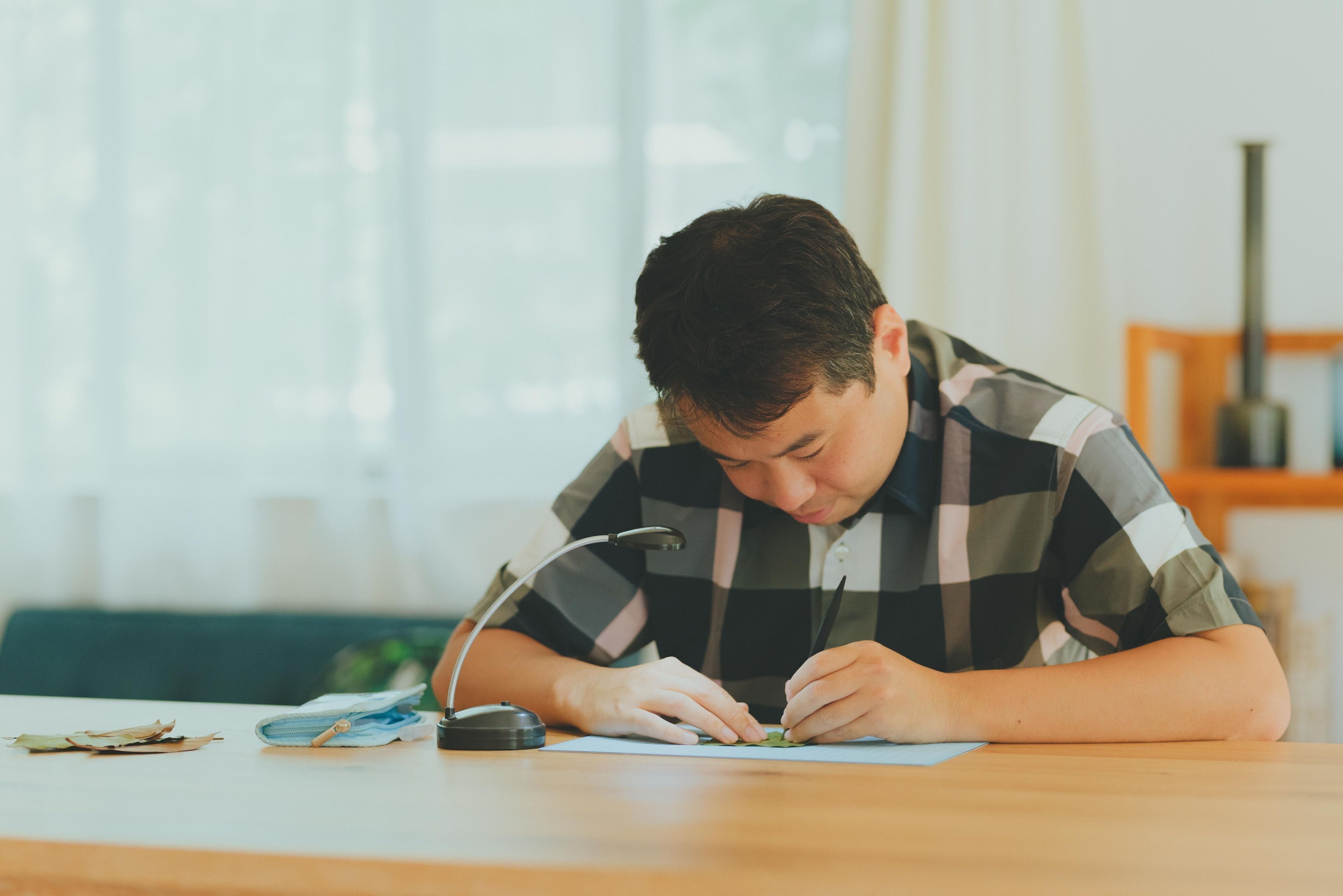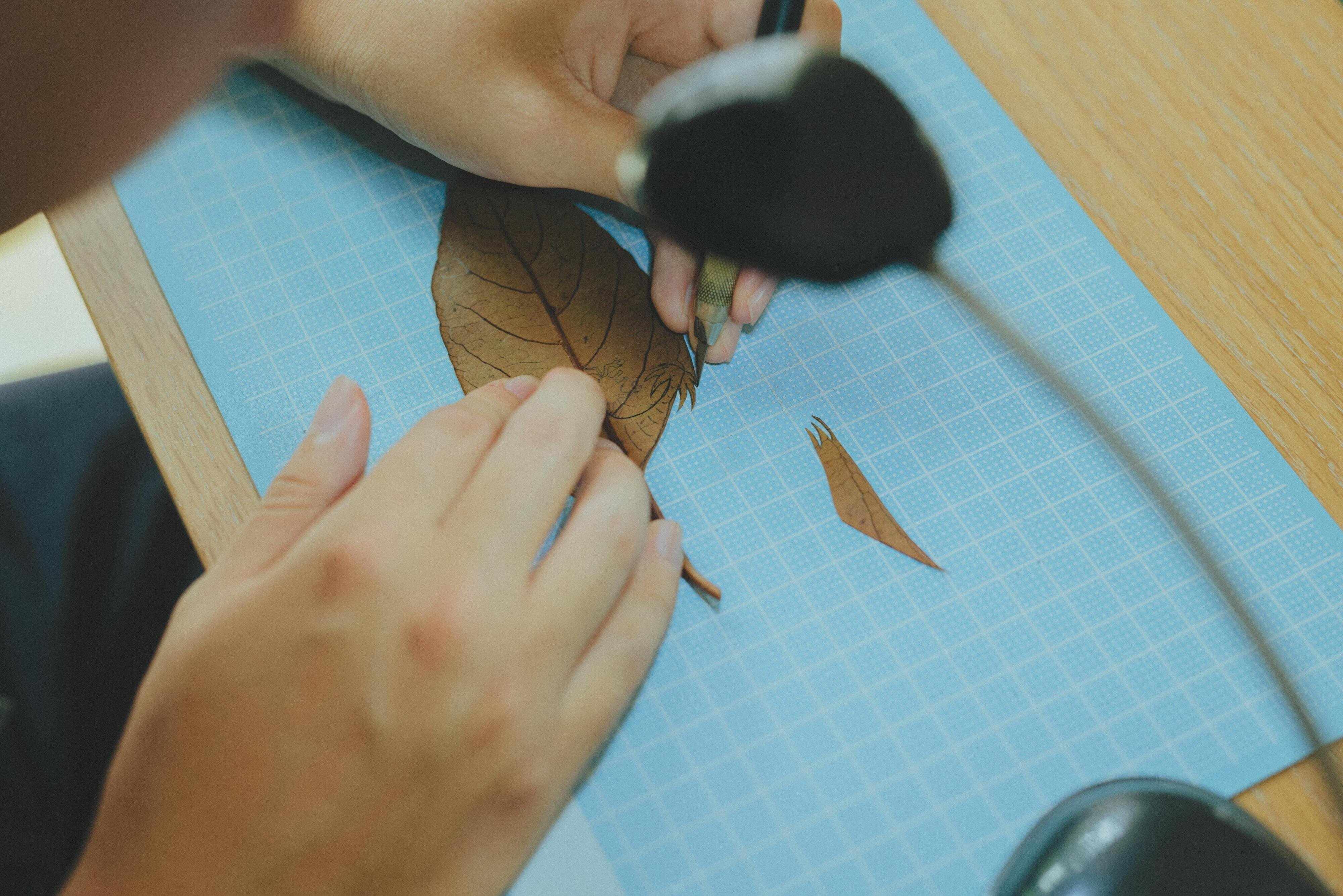 僕の特性が創作活動にはまったんですね。何かに夢中になると、周りの声も聞こえなくなるくらい集中するという僕の性質は会社員としては弱点でしたが、作品を産み出すときには「強み」になる。とくに細かい作品を仕上げるのには6時間程度かかりますが、まったく苦になりません。食事も忘れて葉っぱを切るのも当たり前です。