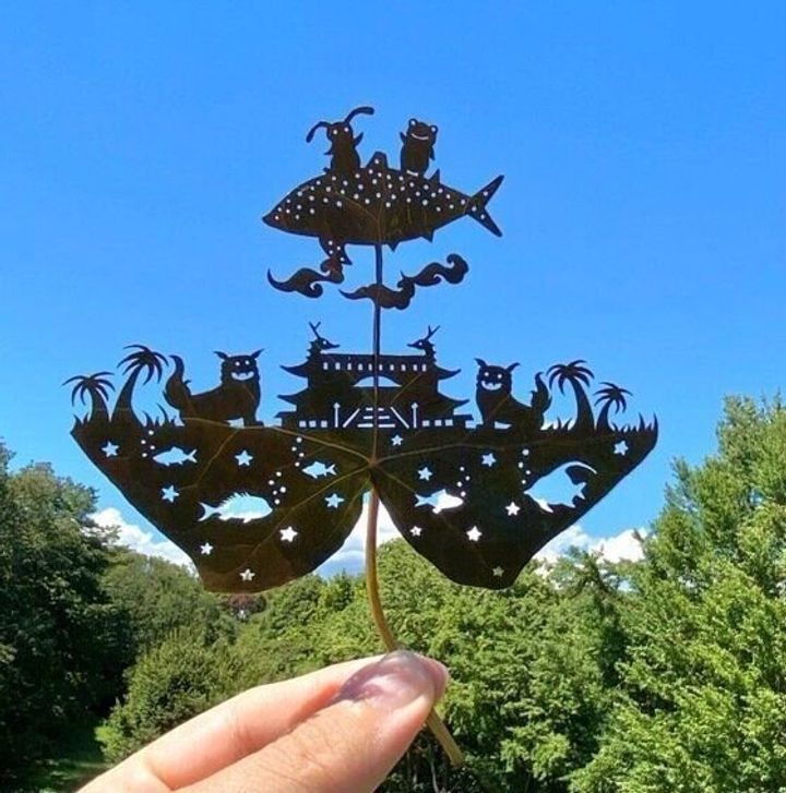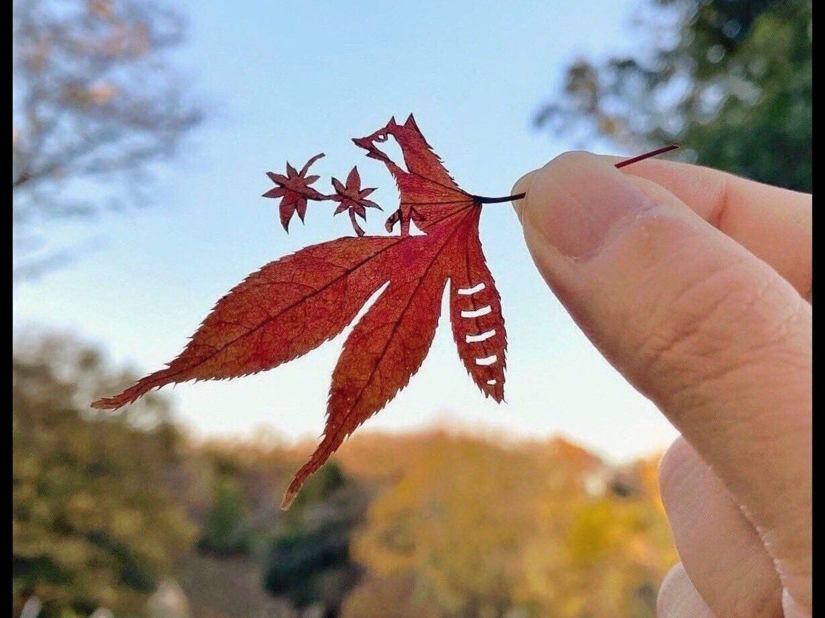 とにかく前に進むしかなかったので、さっそく最初の葉っぱ切り絵に挑戦したんですが、仕上がりはボロボロ。でも、そこでめげずにもう一回チャレンジしたら、まあまあ自分の納得できる作品ができたんです。「これはいける」と手ごたえを感じ、そこから葉っぱ切り絵をツイッターとインスタグラムで発表するようになりました。ツイッターにもインスタにも「いいね」がどんどんつき、フォロワーさんが日増しに増えていきました。