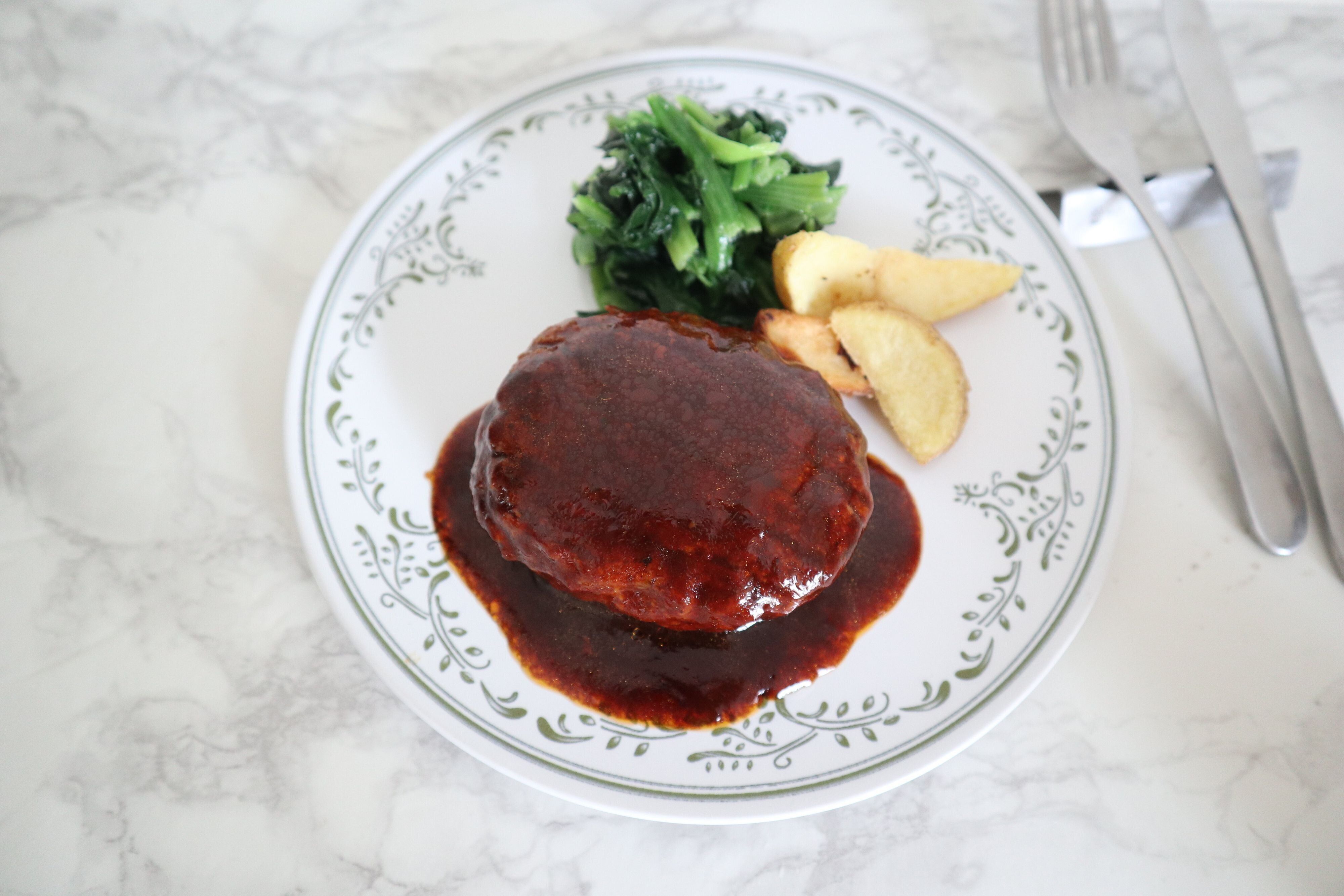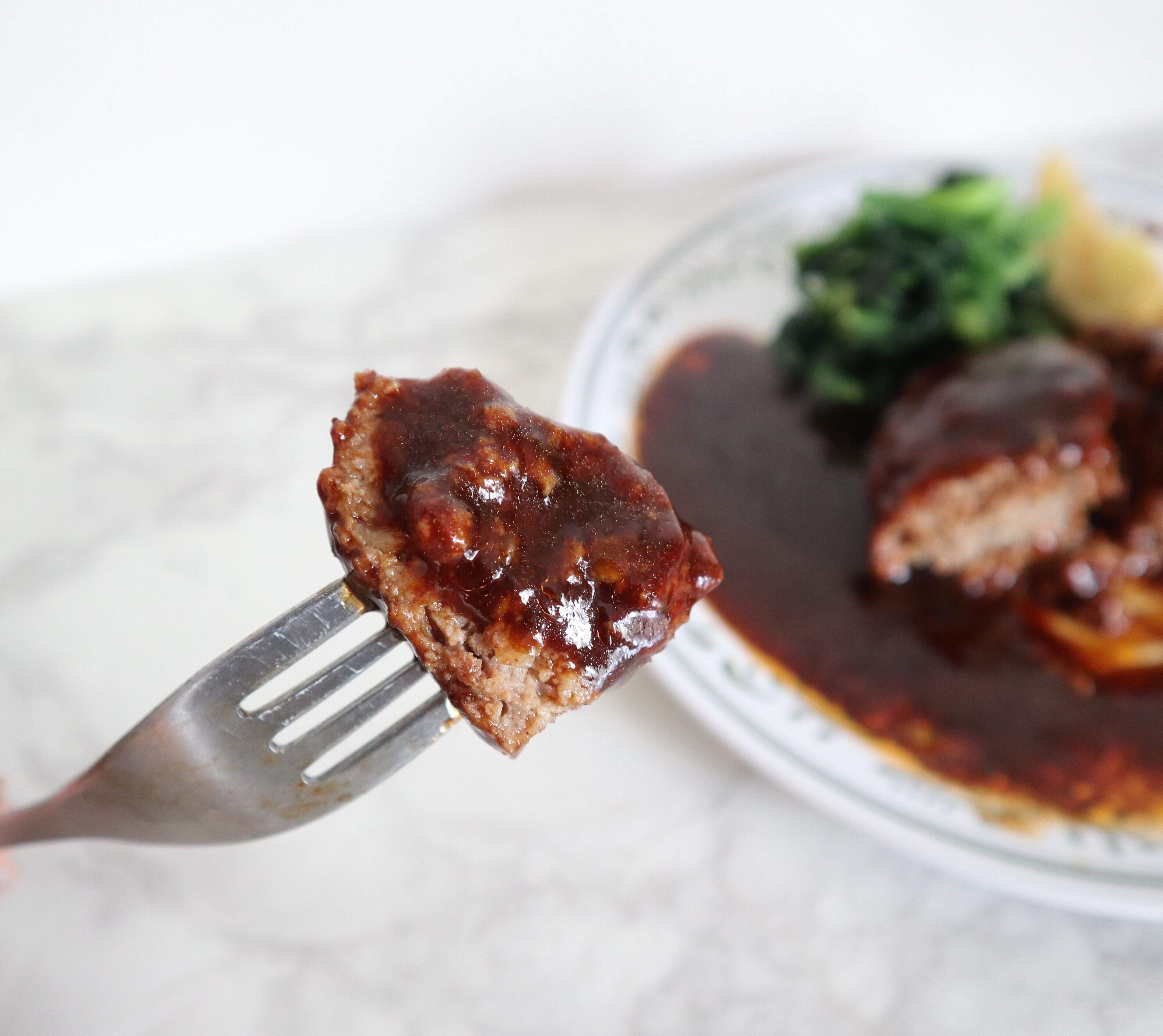 ふっくらハンバーグにたっぷりのデミグラスソースを絡めていただくと最高です。ハンバーグはもちろんおいしいですが、このデミグラスソースが絶品です。濃厚で旨みたっぷりです。