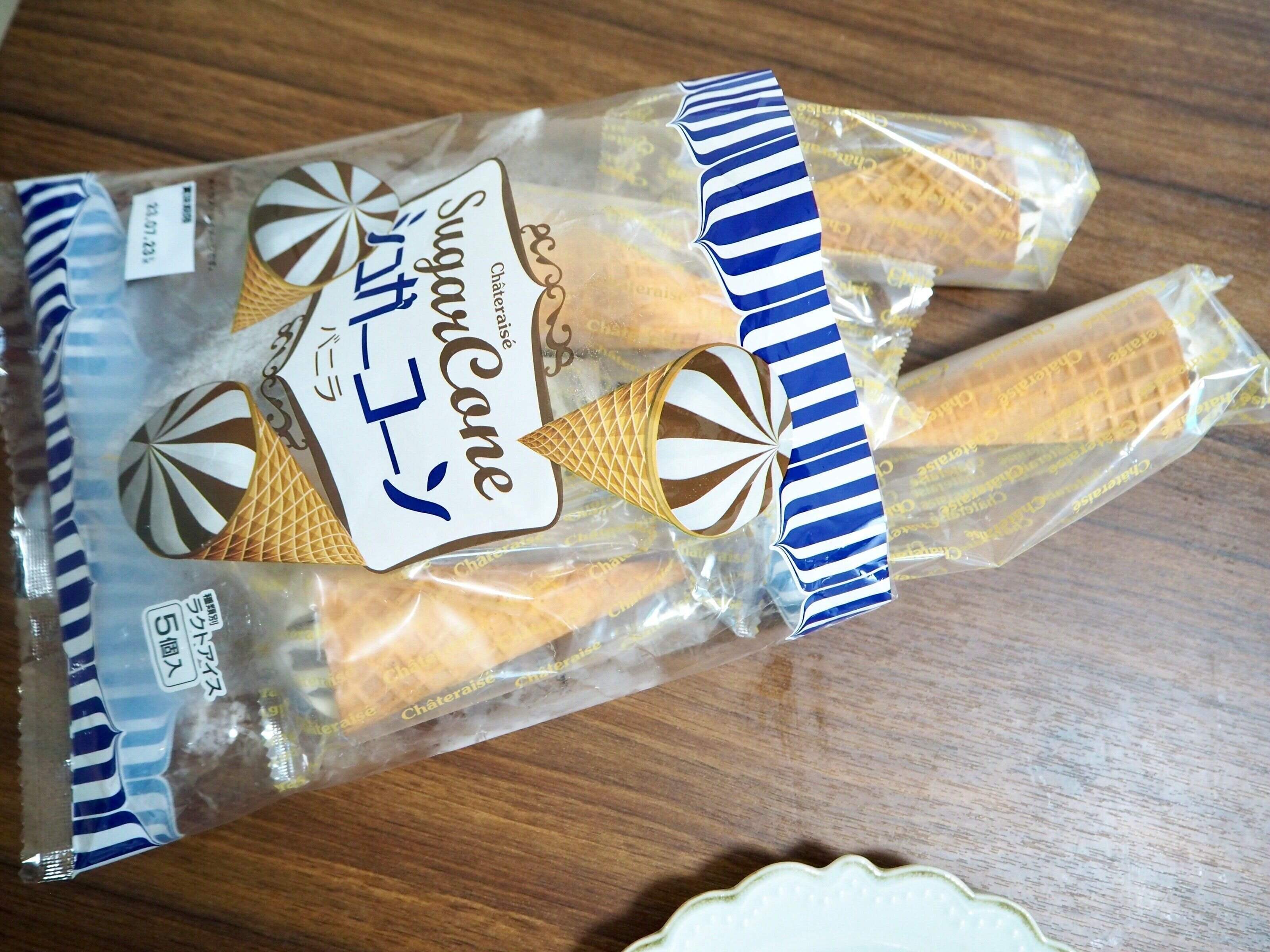 5本入りで237円、1つあたり約47円とお財布に優しいこちらのシュガーコーン、味はバニラとチョコの2種類があります。