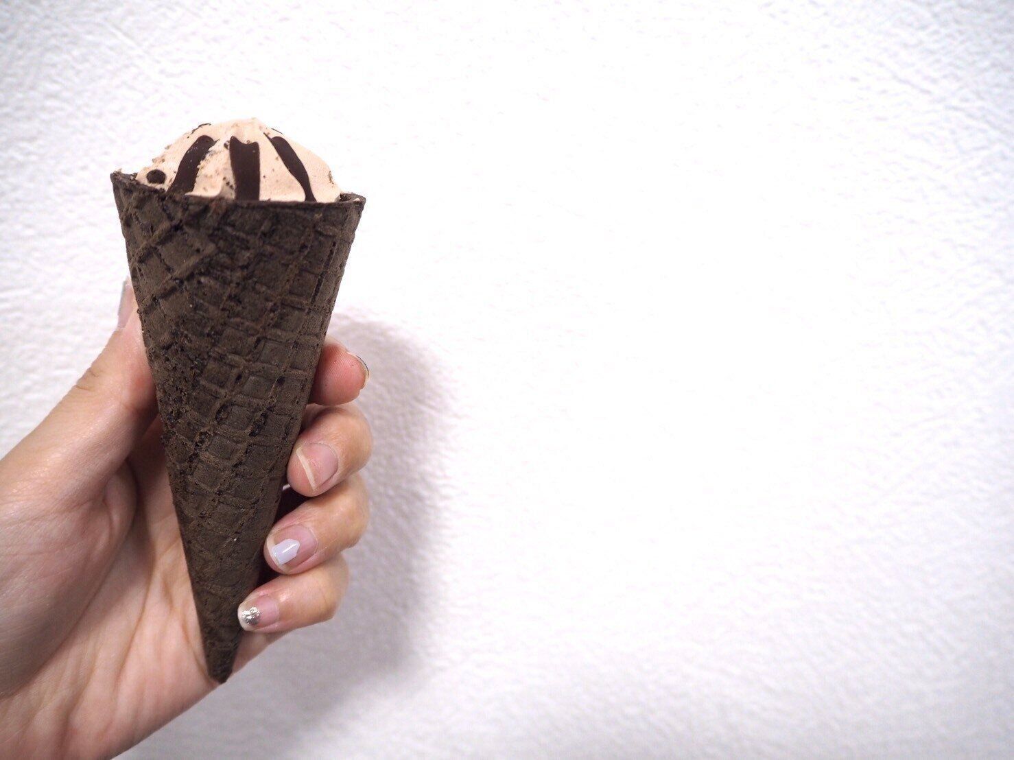 チョコ味のほうはアイスもチョコ、コーンの部分はビターなココアシュガー。