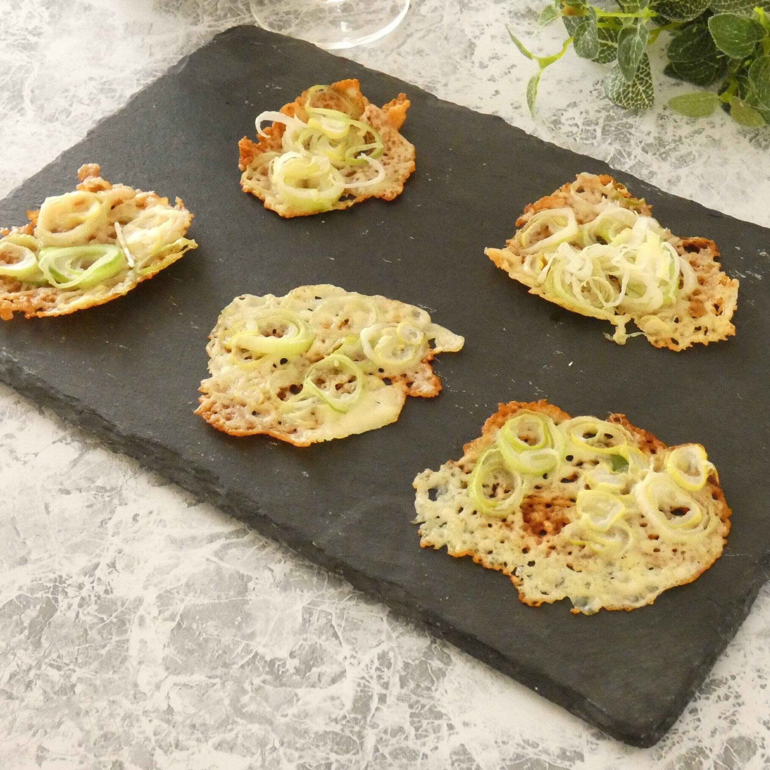 チーズだけでつくれるチーズせんべいはおつまみにぴったり!フライパンにチーズをのせて焼くだけでカリカリ食感になります。ごま油を薄くひいて香りよくしたり、長ねぎなどをトッピングしてもおいしいです。