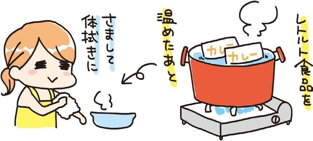 いちばん水を多く使うのが洗い物。しかも使った水は再利用ができません。非常時は「洗い物を出さない!」のが第一。ラップやペーパーを使い、洗わずにすむ工夫をしましょう。