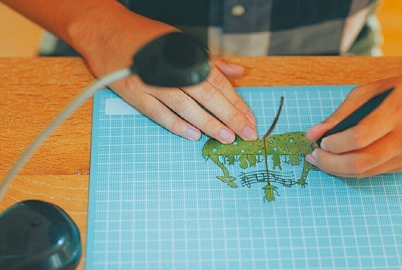 リ そうなんです。でも、緻密な絵というだけでは、すぐ飽きられてしまって。当時は仕事もしておらず、貯金は2万円。なんとかできることを見つけたい、という焦りも。そんなとき、海外のサイトで偶然葉っぱの切り絵について知ったんです。