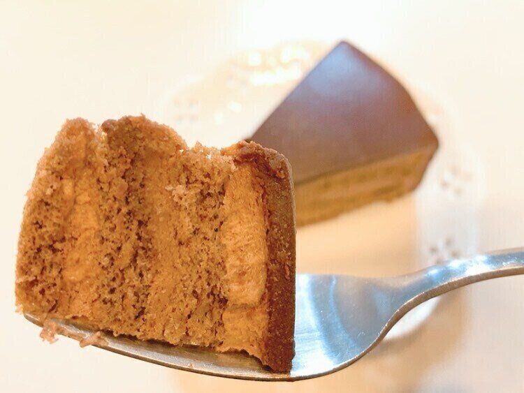 では、肝心の味はどうでしょうか。見た目はシンプルですが、ケーキにかかっている金箔が高級感を引き立たせてくれています。一口食べて、「え?」と一瞬止まってしまうくらいのチョコの濃厚さ。