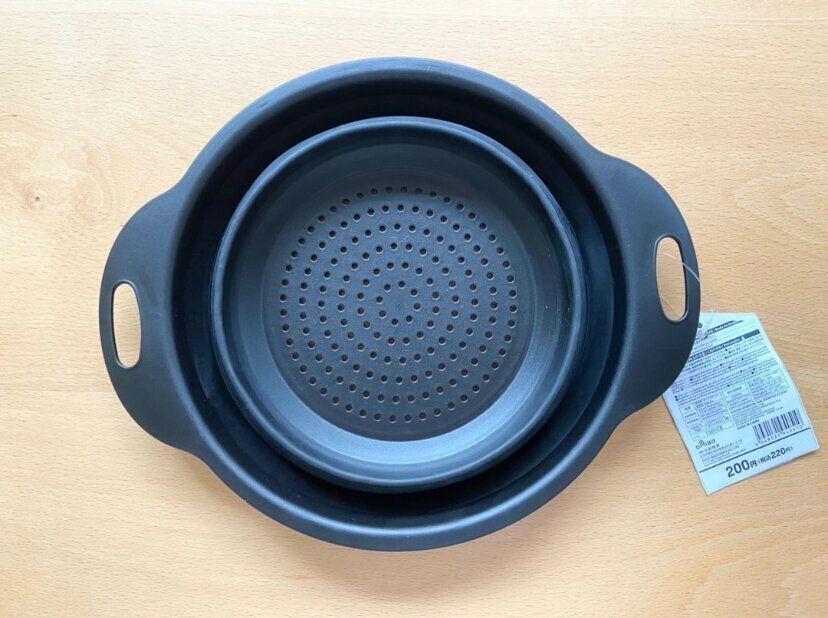 使用後のザルの目詰まりは地味にストレスを感じているかたが多いのではないかと思います。そんなストレスを見事に解消し、コンパクトに収まって収納場所も取らず、しっかり自立して使いやすいダイソーの220円商品「折りたためるザル」をご紹介いただきました。このザルを使い始めてからザルを使う頻度が上がったそうですよ。