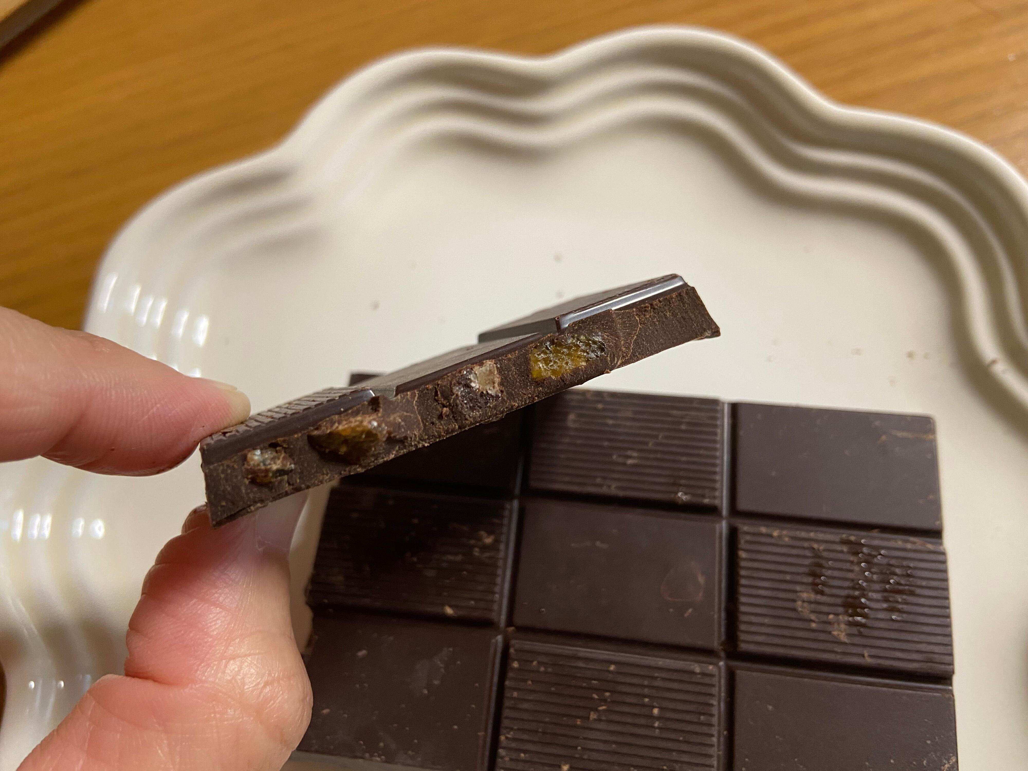 コーティングされている甘すぎないダークチョコレートがまた相性抜群。
