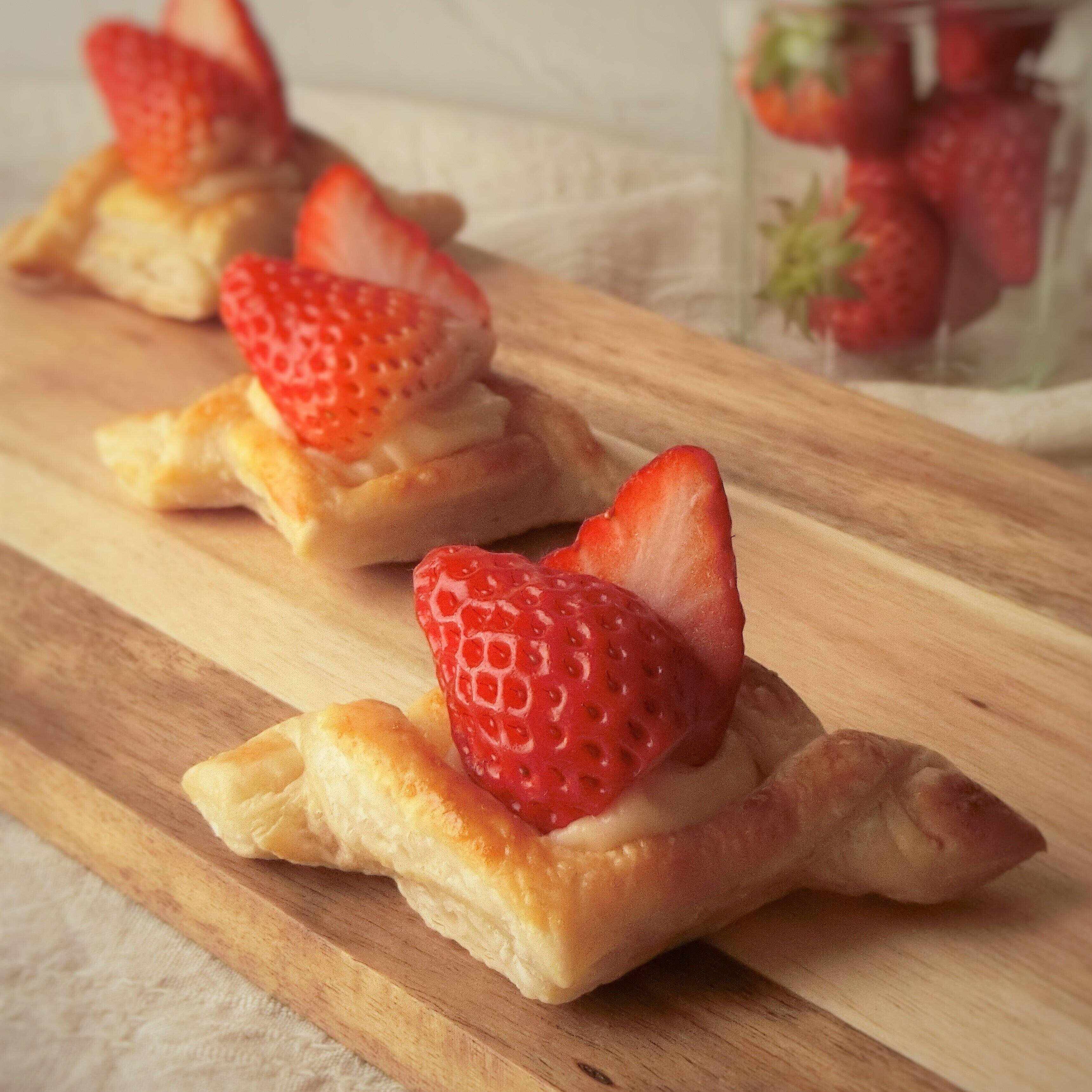 りんごを包んでアップルパイにしたり、小さくカットして焼いたパイに生クリームやカスタード、フルーツを乗せるだけでかわいいミニパイになります。季節のフルーツでお好みのアレンジが楽しめます。